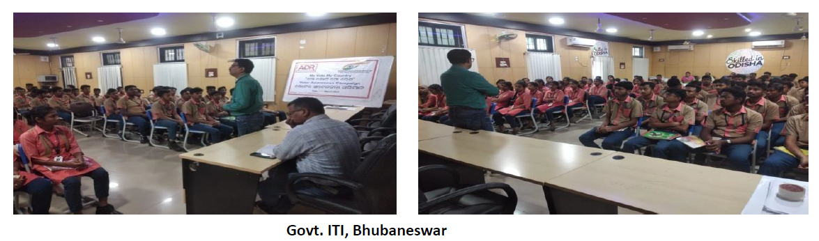 "Mera Vote Mera Desh" voter awareness campaign for youths was organized by Odisha Election Watch in collaboration with ADR at Govt. ITI, Bhubaneswar, in Kordha district on 13th March 2024.