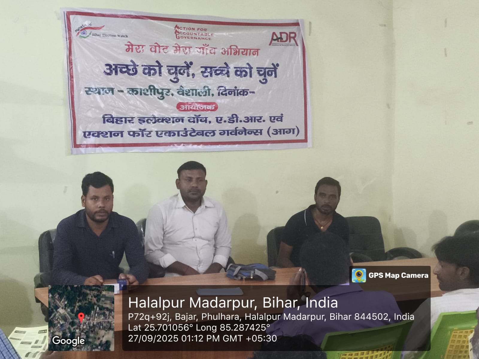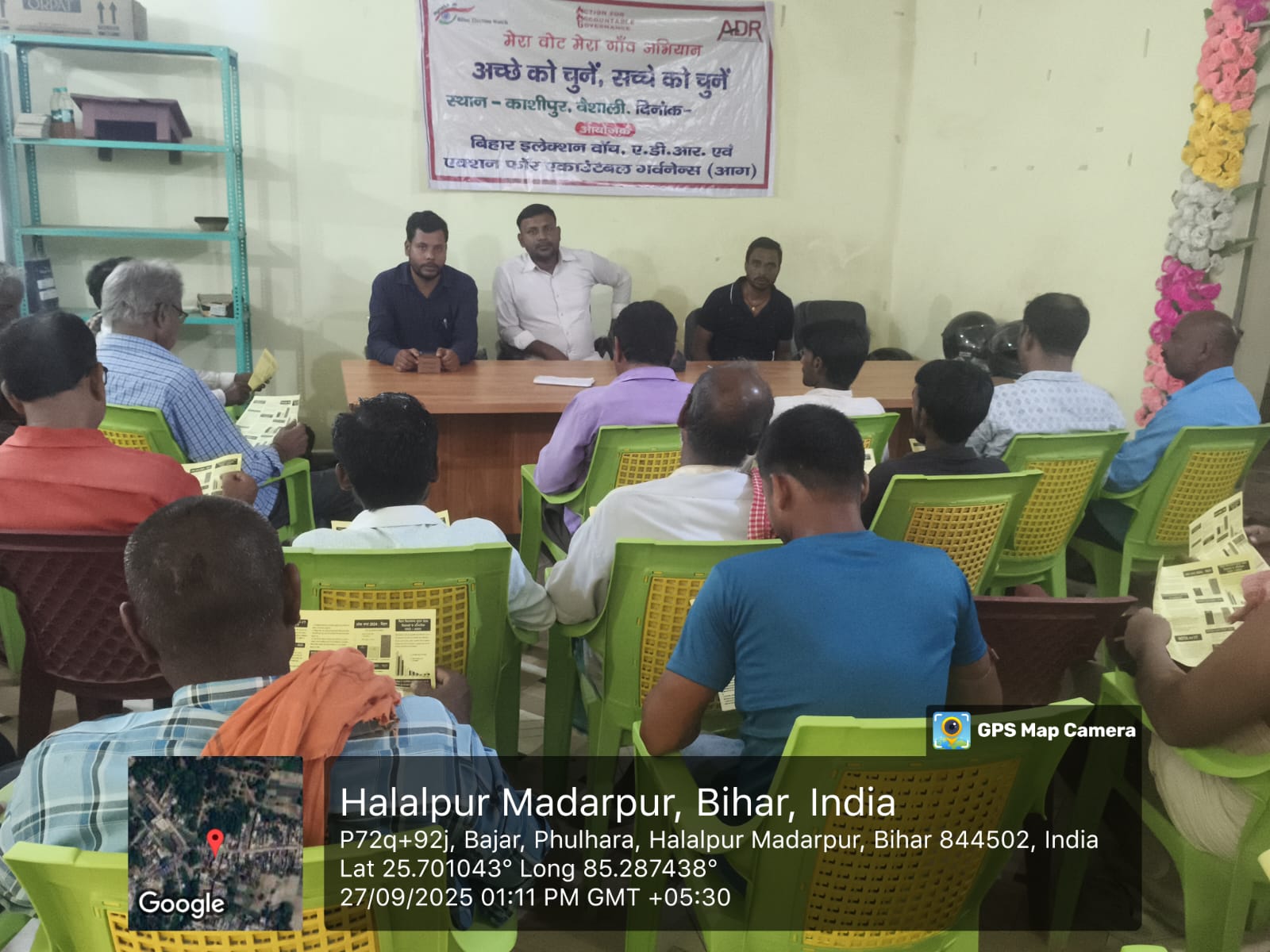 Bihar Election Watch organised a Voter's Awareness Meeting in Hajipur, Vaishali, on 27th September 2025.