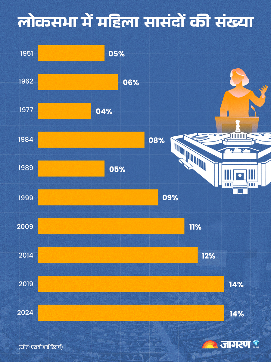 लोकसभा में महिलाओं का प्रतिनिधित्व पहली लोकसभा में 5% से बढ़कर मौजूदा लोकसभा में 14% हो गया है, जो 2019 की तुलना में थोड़ा कम है, जब 78 महिलाएं निर्वाचित हुई थीं। कुल महिला उम्मीदवारों में से चुनी गई महिला उम्मीदवारों का प्रतिशत 9% है, जो 2019 के चुनाव से थोड़ा कम है, लेकिन 2014 के चुनाव के बराबर है।