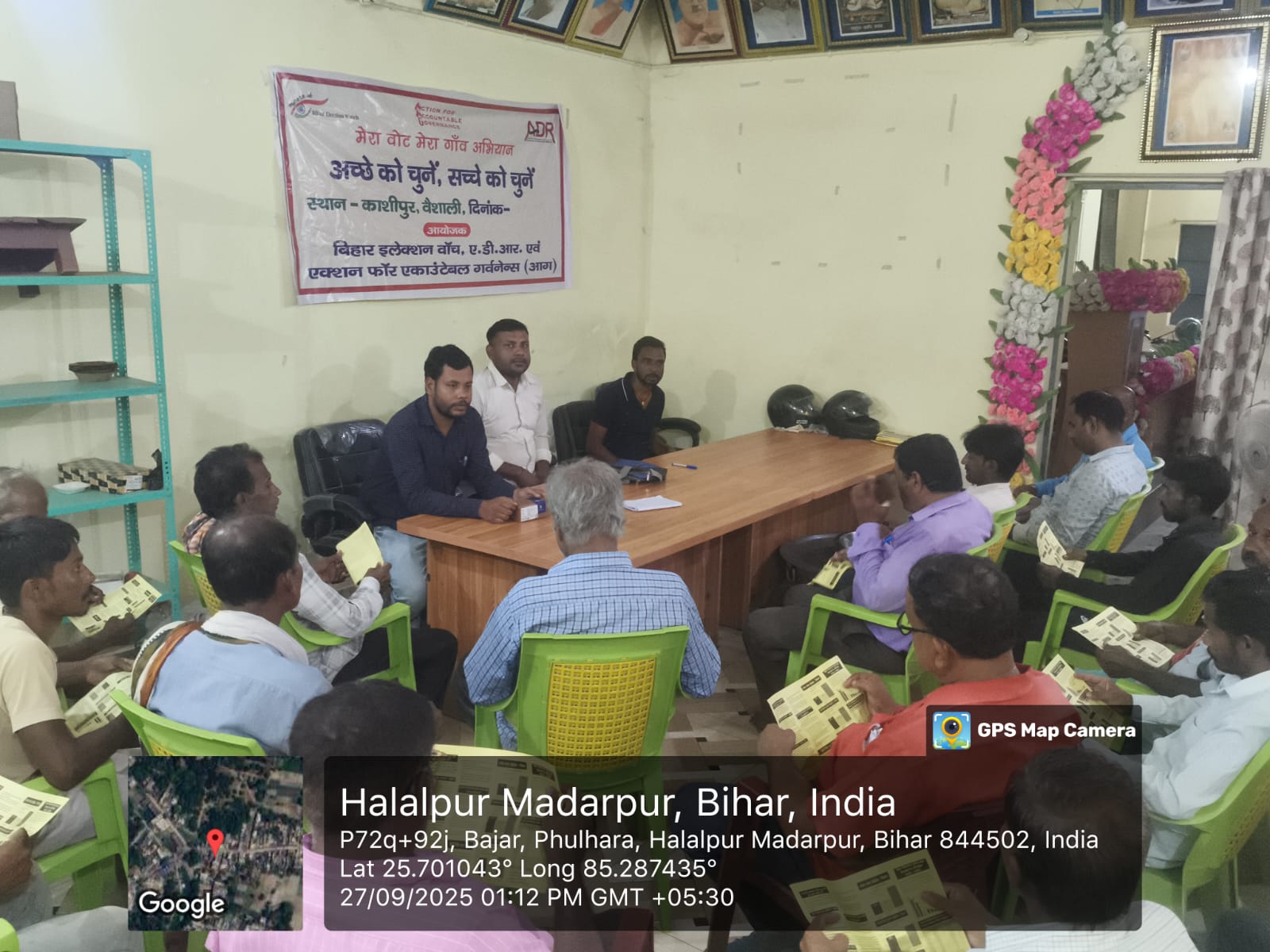 Bihar Election Watch organised a Voter's Awareness Meeting in Hajipur, Vaishali, on 27th September 2025.