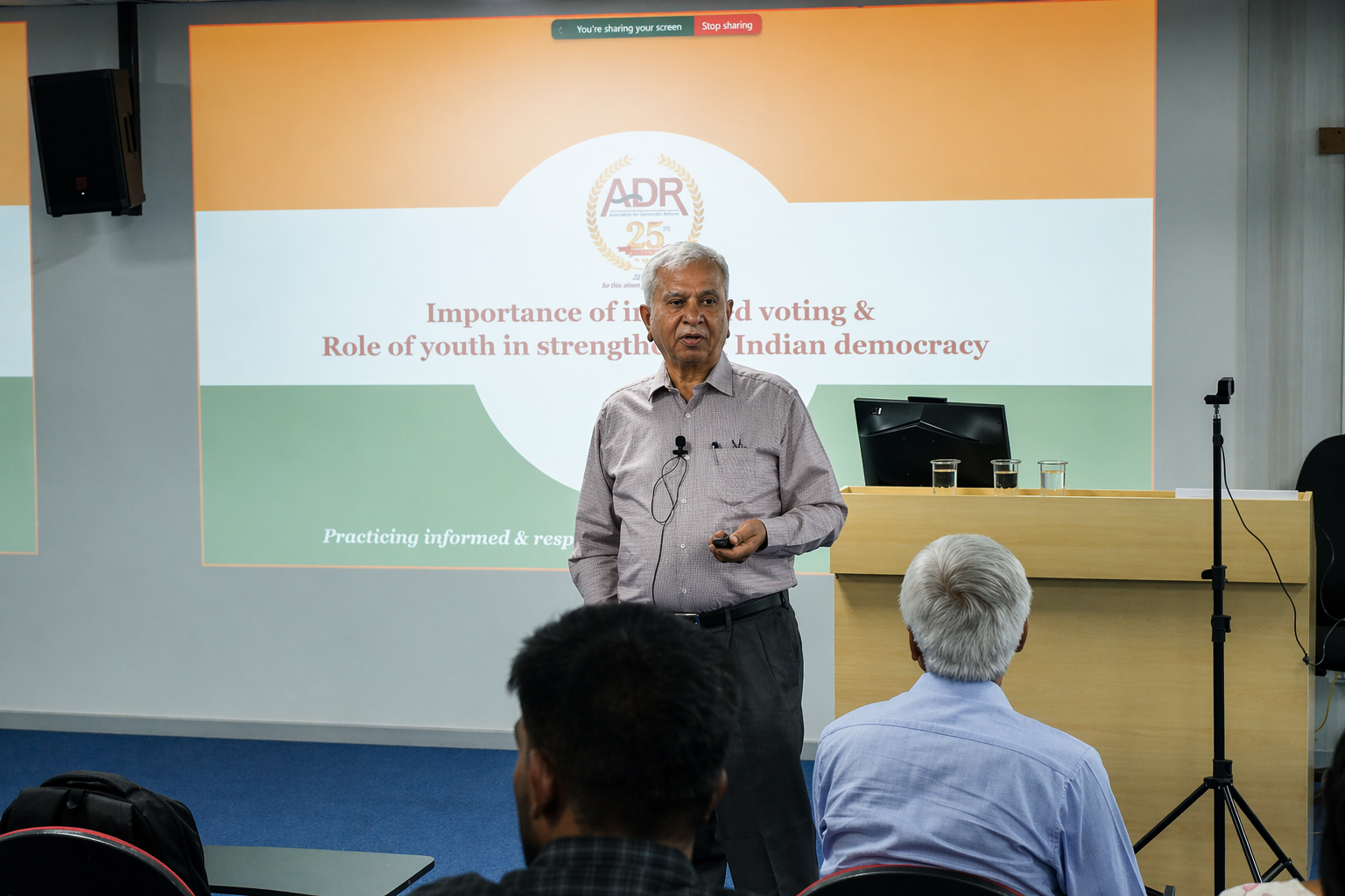 ADR, in collaboration with the International Institute of Information Technology Bangalore (IIITB), organised the first talk of the talk series at IIITB on 22nd April 2026. The topic of the talk was "Importance of informed voting and Role of youth in strengthening Indian democracy". Prof Trilochan Sastry (Chairman, Founder Member & Trustee of ADR) was the speaker. Over 100 students attended the talk.
